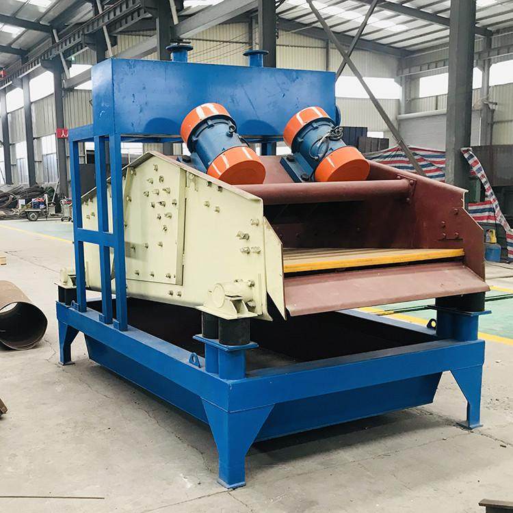 2.  Working process: the pump transmits the sand-water mixture to silt separator;  the enriched fine sand through centrifugal classification is conveyed to  vibration sieve via desilting mouth; the fine sand and water is effectively  separated after dehydration by vibration sieve; a small amount of fine sand and  silt returns to wash tank via return tank. When the level inside wash tank is  too high, the liquid will be discharged from discharge port. . The  material recovery weight concentration of rectilinear vibration sieve is  70%-85%.. The fineness modulus can be adjusted by changing  pump speed, sand pulp concentration, adjusting overflow water and replacing  sand output port so as to perform the washing, dehydration and grading  functions.